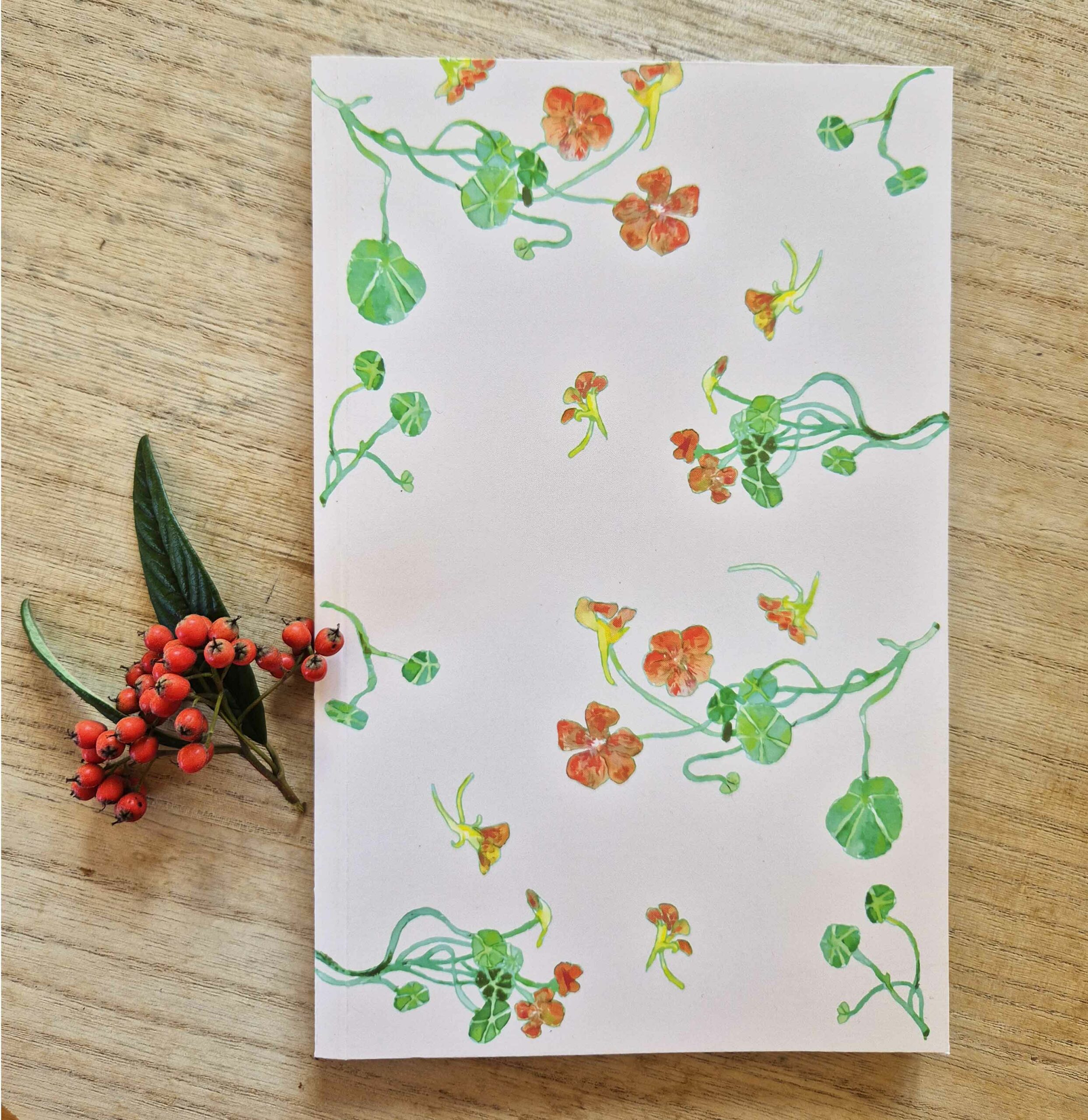 Carnet format 13,9×21,6 cm de 80 pages vierge avec un motif créé par l’artiste Isabel Com.