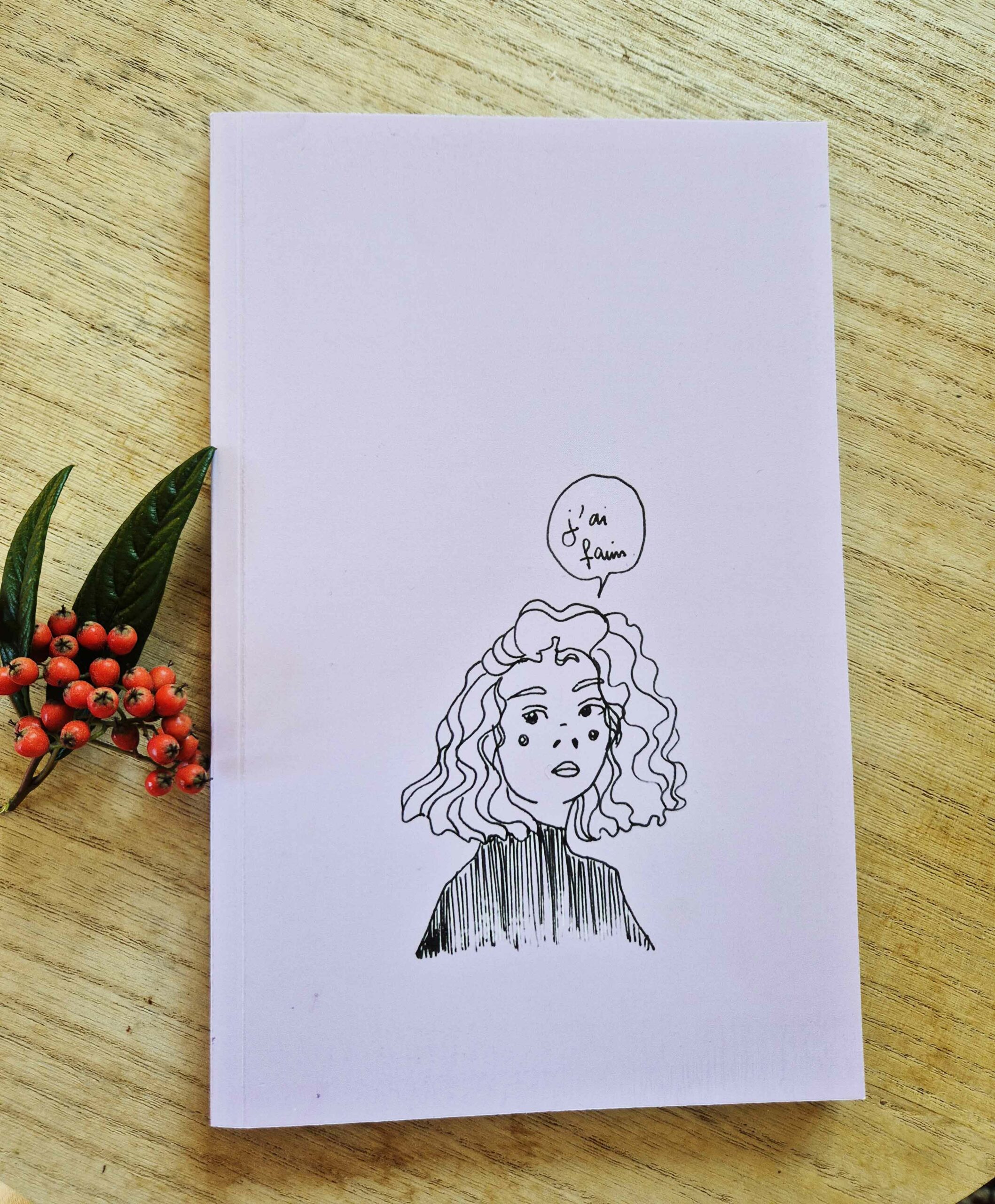 Carnet format 13,9×21,6 cm de 80 pages vierge avec une illustration créée par l’artiste Isabel Com.