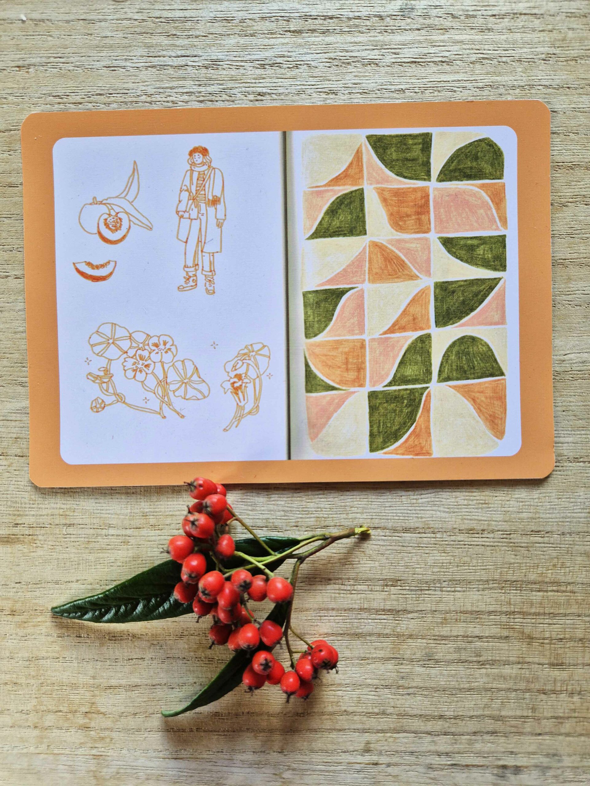 Carte postale format A6 d’une page d’un carnet de croquis de l’artiste Isabel Com.