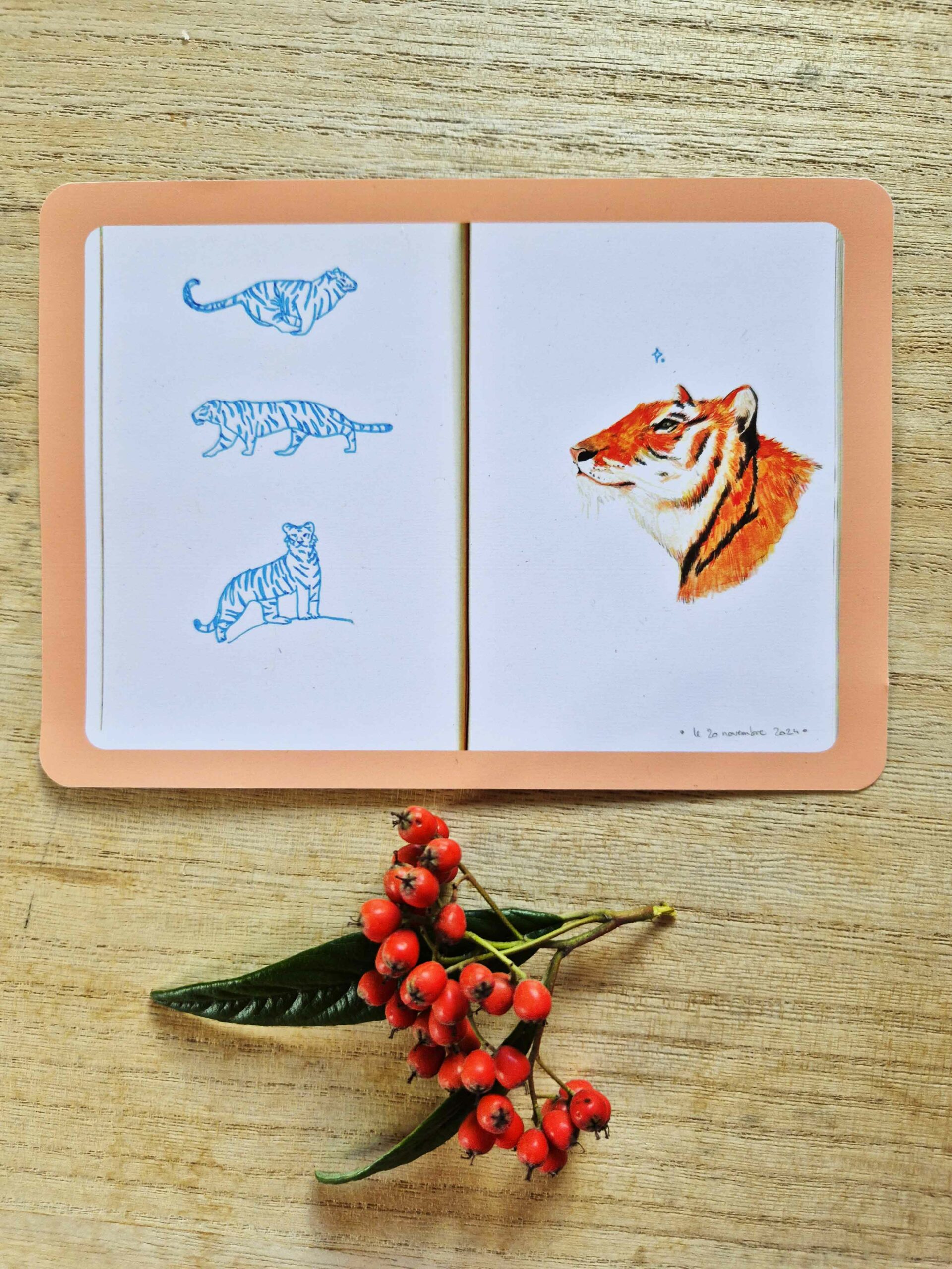 Carte postale format A6 d’une page d’un carnet de croquis de l’artiste Isabel Com.