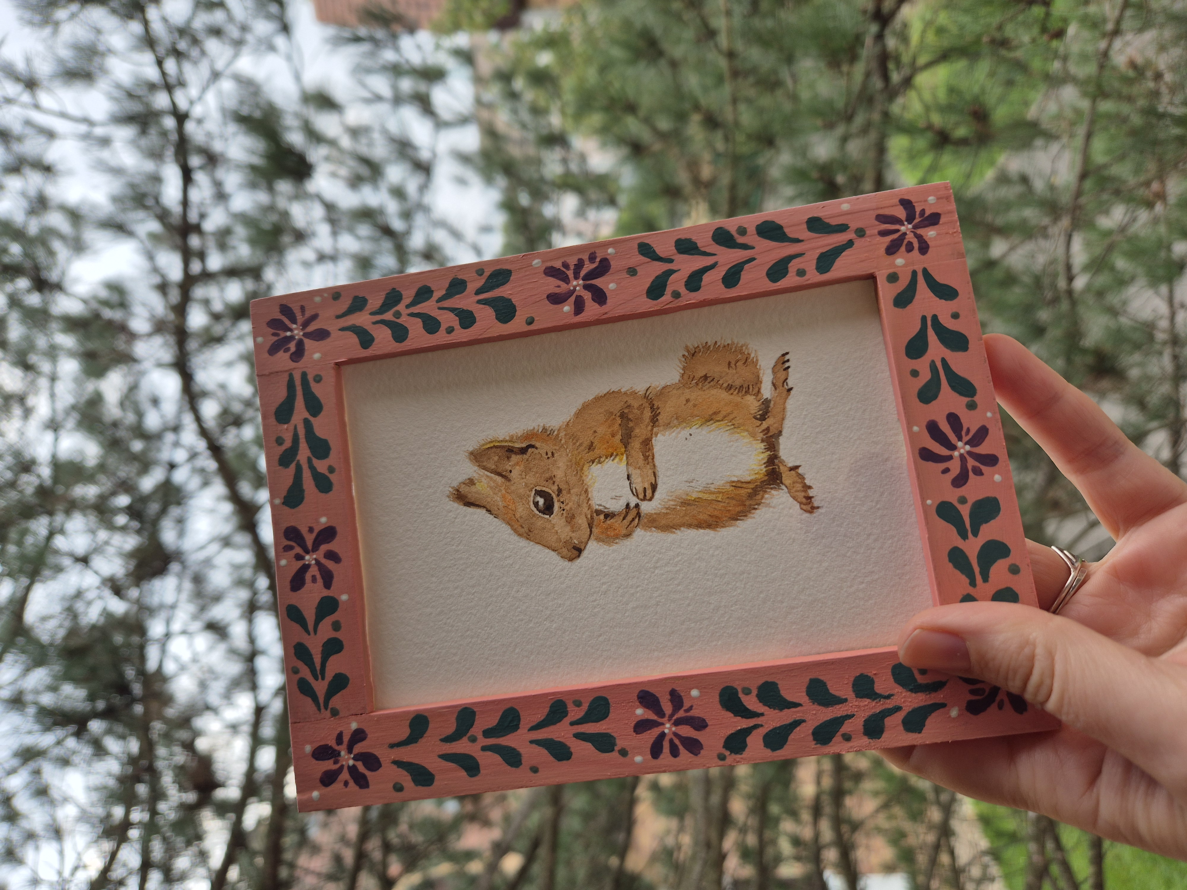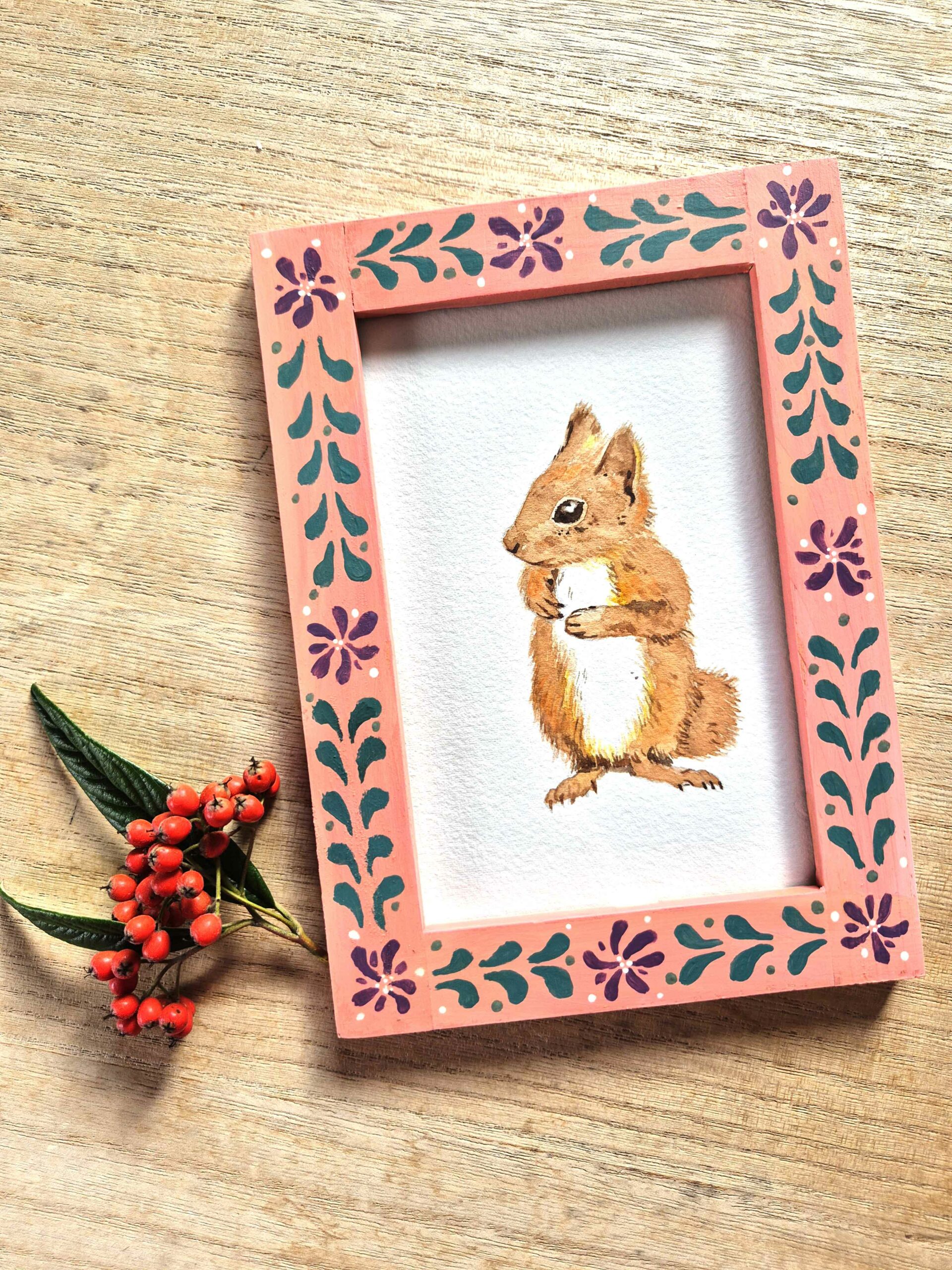 – 1 cadre en bois peint et verni à la main par l’artiste Isabel Com, au format : 10 x 15 cm.