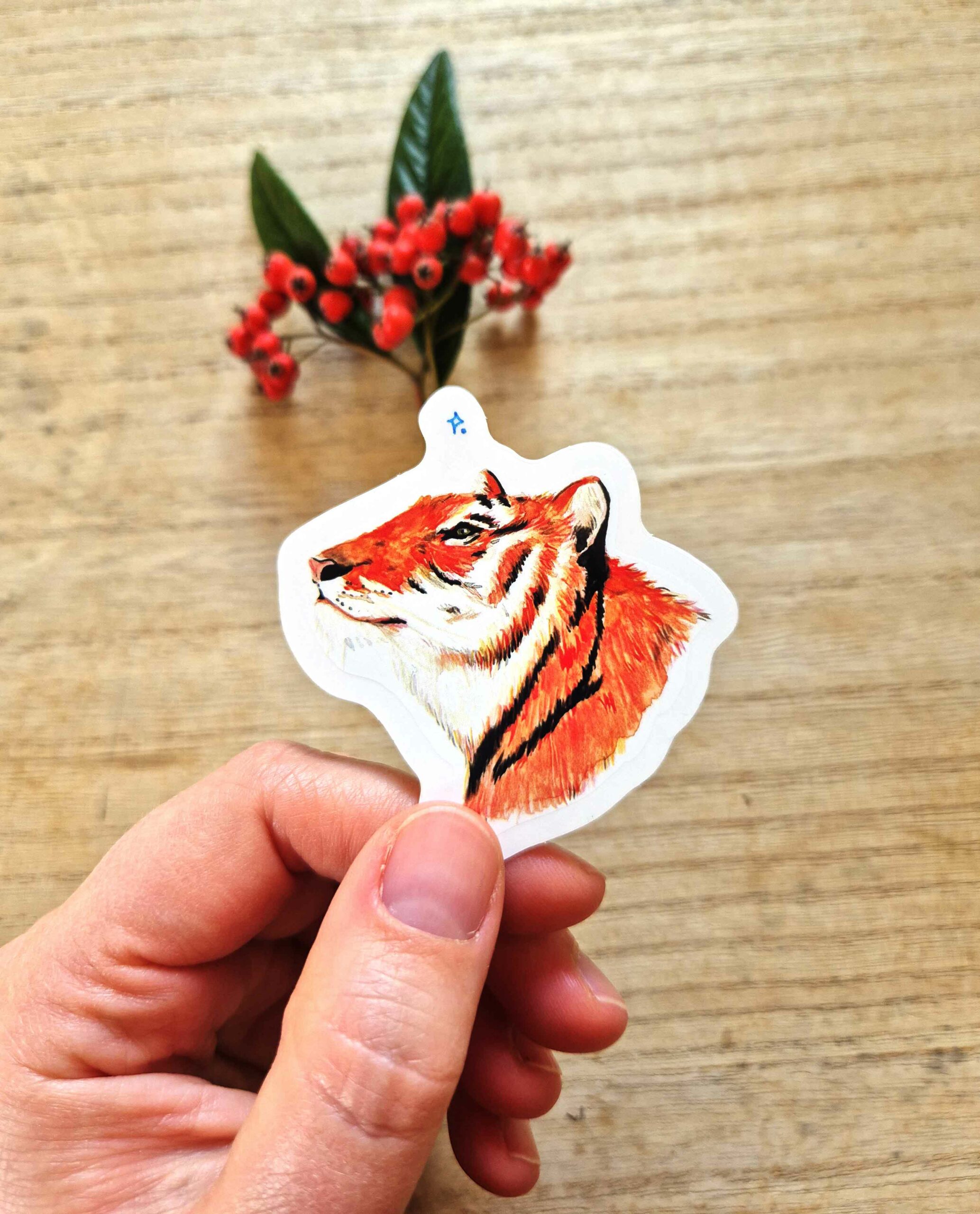 – 1 sticker imprimé sur vinyle brillant résistant aux intempéries, format 6×6 cm, fond transparent.